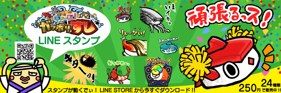 - ギョ~転!ガッポリすし公式スタンプがLINE STOREにて販売中です。